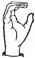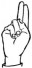 На ћирилици написано БРАНИСЛАВ УЛЕМЕК састоји се из 15 слова [?]. Исписано ћириличном једноручном азбуком за глувонеме: